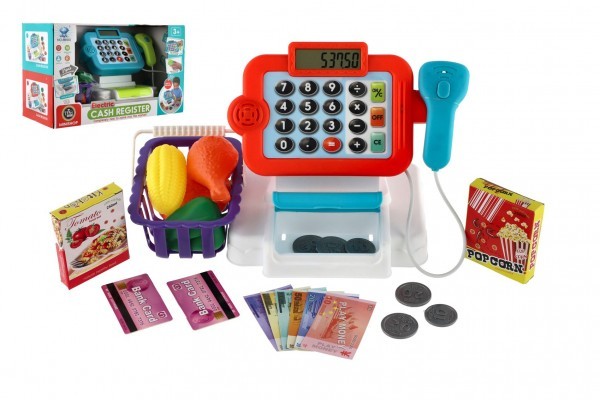 Dětská elektronická pokladna s doplňky pro každou malou prodavačku. Součástí pokladny je čtečka se světlem a zvukem, makety bankovek a mincí na hraní, slot pro kreditní kartu, funkční kalkulačka, košíček s ovocem a zeleninou. Pokladna jej na baterie 2x AA, nejsou součástí balení. Rozměr balení: 33 x 20 x 15 cm Vhodné pro děti od 3 let
