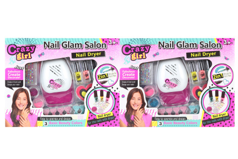 Tato sada obsahuje vše potřebné pro nehtové studio přímo u vás doma. Součástí je praktická sušička na nehty na baterie, která zajistí rychlé zaschnutí vašeho laku bez čekání. V balení najdete také 3 laky na nehty, pilník, dvojnásobnou dávku třpytek a další doplňky, které vám pomohou vytvořit nehtový design podle vaší fantazie. Stačí přidat 2 baterie AAA (nejsou součástí) a můžete začít tvořit.