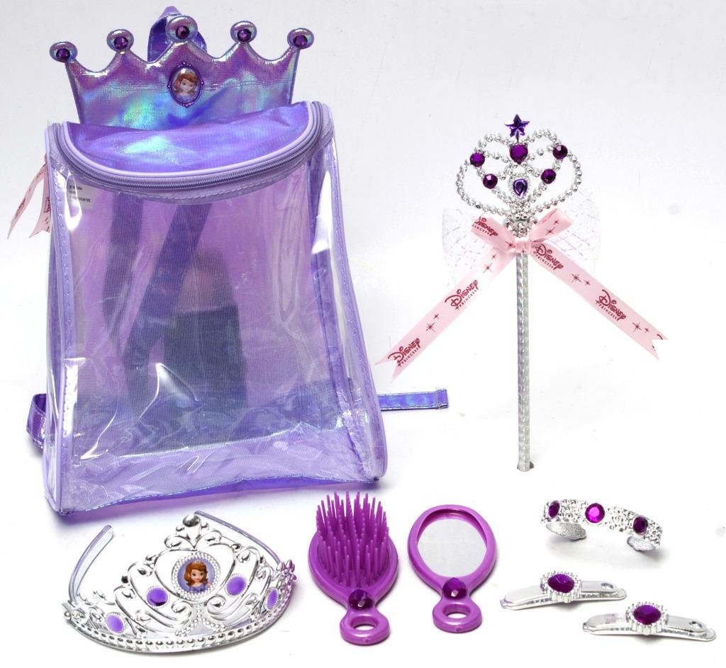 Krásný batůžek princezny Sofie První s doplňky pro malou princeznu.Která holčička by nechtěla být princeznou Sofií? V tomto batůžku je spousta krásných doplňků, díky kterým se holčička stane princeznou a může zazářit na princeznovském nebo maškarním bále. Batůžek má fialovou barvu a je vyroben z lesklého materiálu a ozdoben obrázkem princezny Sofie a korunou. V balení nechybí stříbrná korunka s obrázkem princezny Sofie. Součástí je i hřeben a zrcátko, sponky s fialovými kameny, náramek s bílými a fialovými kameny, stříbrná hůlka zdobená fialovým kamenem ve tvaru hvězdy a dalšími fialovými a bílými kamínky a na hůlce nechybí ani růžová mašle s logem Disney. Obsah: batoh, korunka, hůlka, hřeben, zrcátko, náramek, 2x sponka do vlasůUPOZORNĚNÍ Nebezpečí udušení. Nevhodné pro děti mladší 36 měsíců. Obsahuje malé části, které by mohly být spolknuty nebo vdechnuty. Obal není hračka, před použitím hračky ho odstraňte z dosahu dítěte, může způsobit zadušení.UPOZORNĚNÍ Nebezpečí udušení. Nevhodné pro děti mladší 36 měsíců. Obsahuje malé části, které by mohly být spolknuty nebo vdechnuty. Obal není hračka, před použitím hračky ho odstraňte z dosahu dítěte, může způsobit zadušení.