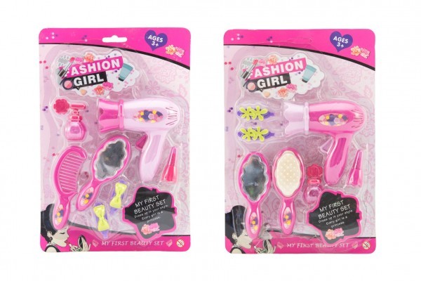 Sada krásy/Malá kadeřnice s fénem a doplňky plast 2 druhy na kartě 18,5x27,5 cm