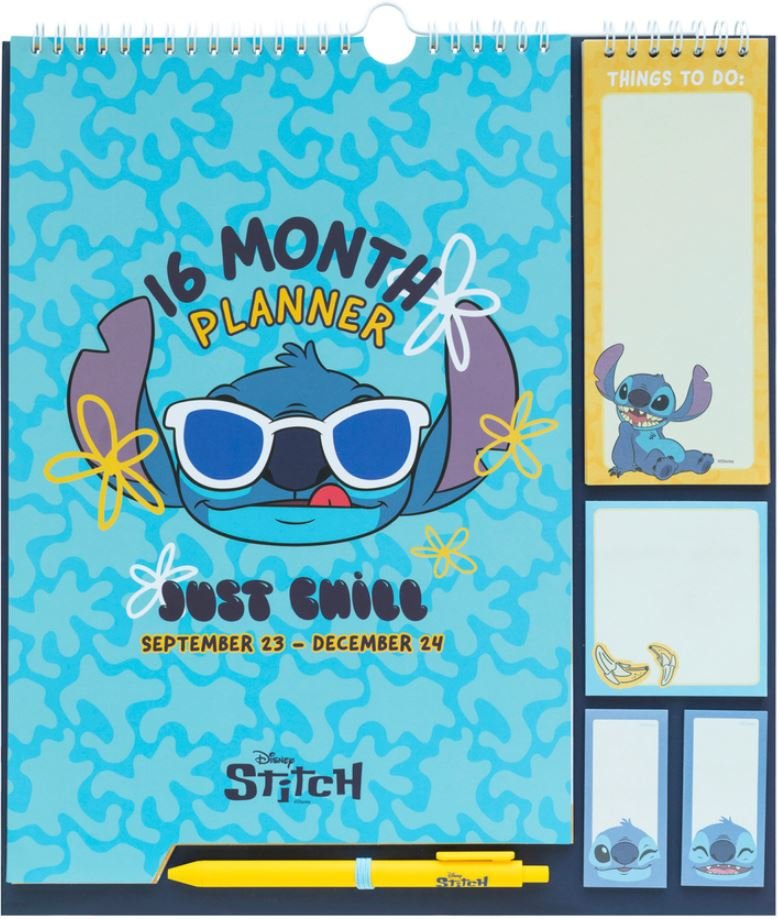 Oficiální produkt - nástěnný kalendář a organizér 2023/2024 z katalogu zboží s motivem animovaného filmu Lilo & Stitch od společnosti Disney.
