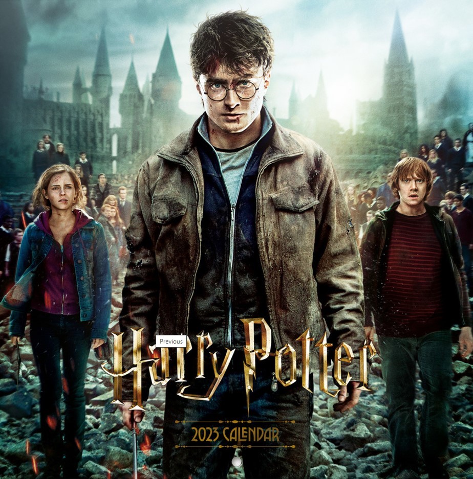 Oficiální nástěnný kalendář na rok 2023 s licencí kouzelnické literární a filmové ságy Harry Potter.