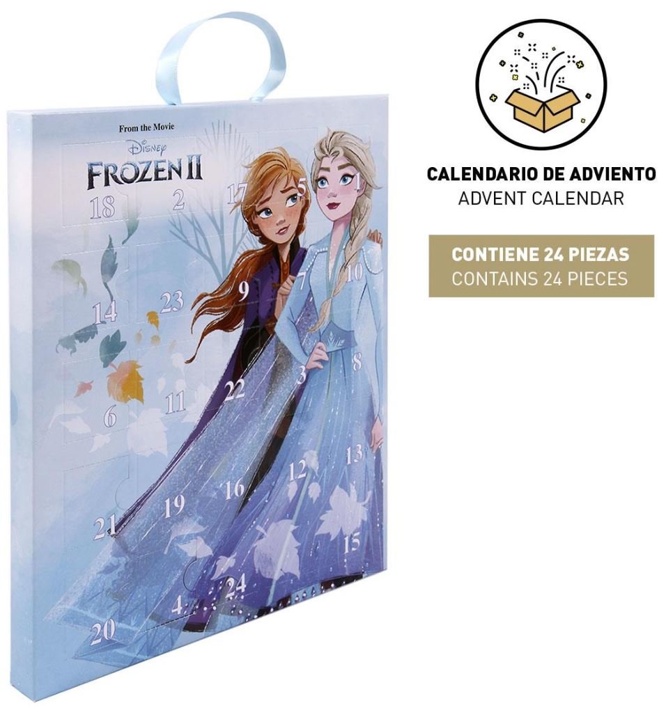 Adventní kalendář s motivy hlavních postav Elsy a Anny z animovaného filmu Frozen II studia Disney.