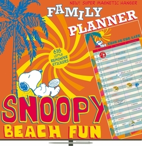 Nedatovaný kalendář s postavičkou Snoopyho pro celou rodinu s 616 motivačními samolepkami, kuličkovým perem, papírovou kapsou a praktickou magnetickou lištou pro umístění na lednici.