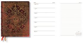 Kanadský luxusní týdenní diář Carmine z kolekce Equinoxe inspirované motivem "Fanfare" z období 17. století v Německu.  Verso týdenní diář / Dvě záložky pro snadné nalezení správné stránky / Zadní kapsa pro papíry, dokumenty, vizitky / Zavírání pomocí elastické pásky. číst celé