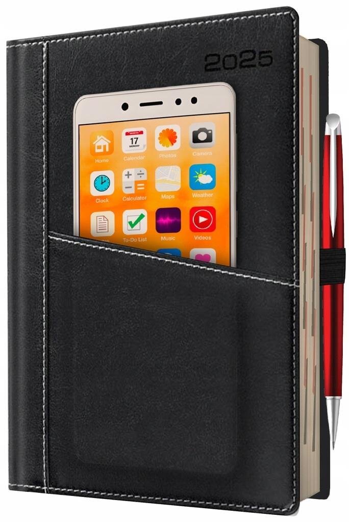 KALENDARZ KSIĄŻKOWY PRAKTYCZNY NA 2025 ROK FORMAT: A5 DZIENNY Wykończenie: PRAKTYCZNA KIESZONKA na TELEFON, NOTATKI, DOKUMENTY, itp. PRAKTYCZNA GUMKA na Długopis Zakładka w kolorze okleiny Wymiary: 21 cm x 15 cm, format A5 Registry: Drukowane Układ: dzień na stronie (sobota z niedzielą są na jednej stronie) Podział godzinowy dni roboczych 6:00-18:00 Imieniny, święta Wschody i zachody słońca Ilość stron: 324 stron Kalendarium: skrócone 3-letnie kalendarium, kalendarium dzienne (PL, GB, D) z układem skróconego rocznego, stronę na notatki, imieniny, święta, Zodiak, wschody i zachody Słońca, fazy Księżyca, numeracja tygodni, kolorowa mapa Polski Termoprzebarwialna oprawa na tekturze z gąbką umożliwia wykonanie tłoczenia matrycą, personalizacji laserowej i nadruków.