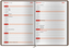 Kalendarz formatu A4, układ kalendarium tygodniowy, okładka twarda oprawiona ekoskórą z tłoczeniem na okładce, 144 strony.