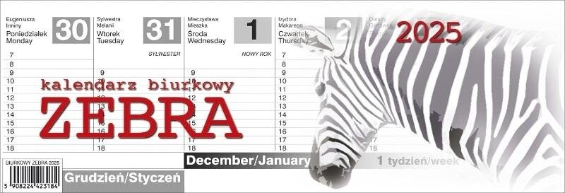 Kalendarz 2025 biurkowy Zebra (polsky)