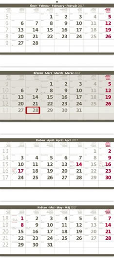 Kalendář nástěnný 2017 - 4měsíční/šedý skládaný s jmenným kalendáriem