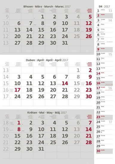 Kalendář nástěnný 2017 - 3měsíční/šedý s poznámkami a jmenným kalendáriem