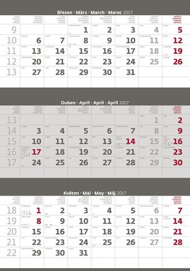 Kalendář nástěnný 2017 - 3měsíční/šedý s jmenným kalendáriem