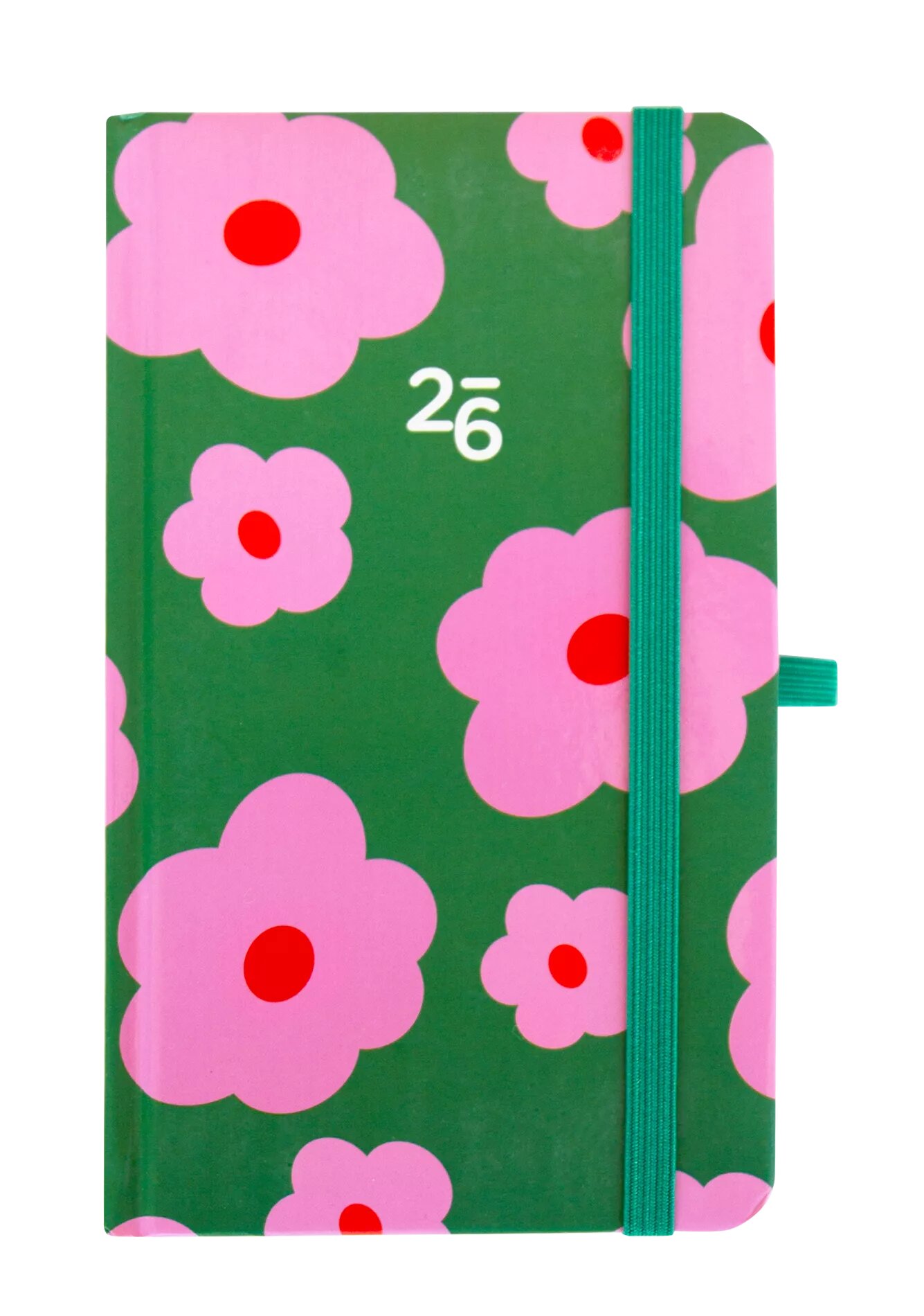 Kalendarz 2026. Tygodniowy kieszonkowy. Kwiaty na zielonym tle (polsky)