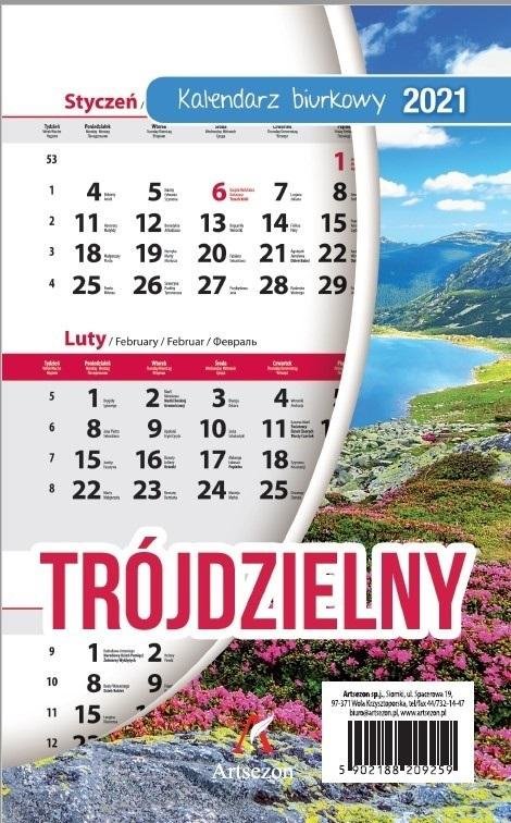 Kalendarz trójdzielny, pionowy, namiot na spirali, podkładka bindowana.