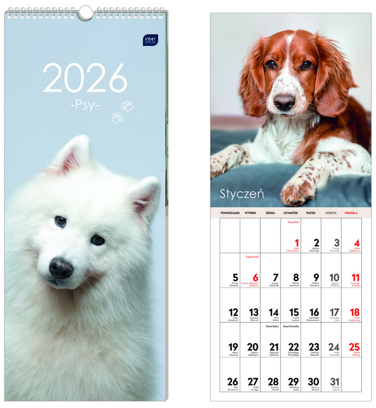 Kalendarz paskowy 17x41cm Psy 2026, Interdruk (polsky)