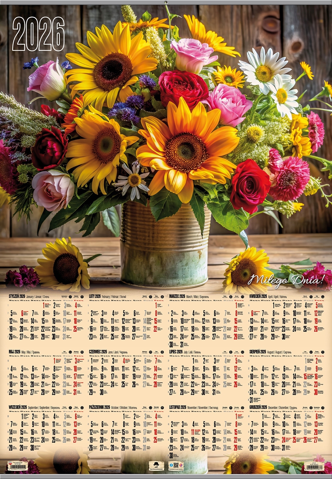 Kalendarz 2026 plakatowy B1 z listwą Bukiet KP-B1 VP.8