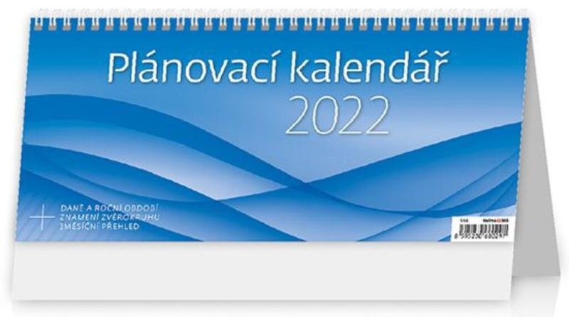 Stolní kalendář na rok 2022 Formát: 30,1 x 13,5 cm Kalendárium: české týdenní sloupcové Počet stran: 60 + 2 Stojánek: se zámkem + daně, roční období, znamení zvěrokruhu, 3měsíční přehled