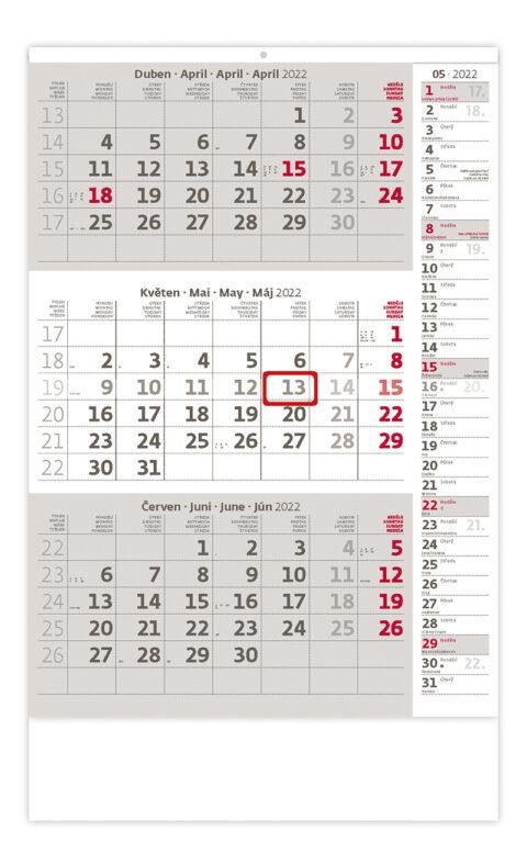 Kalendář nástěnný 2022 - Tříměsíční šedý s poznámkami