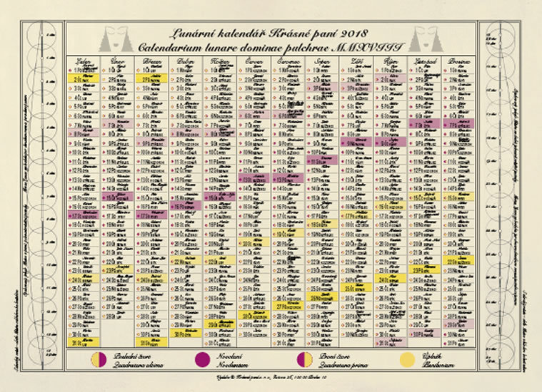 Jednolistý Lunární kalendář Krásné paní 2018