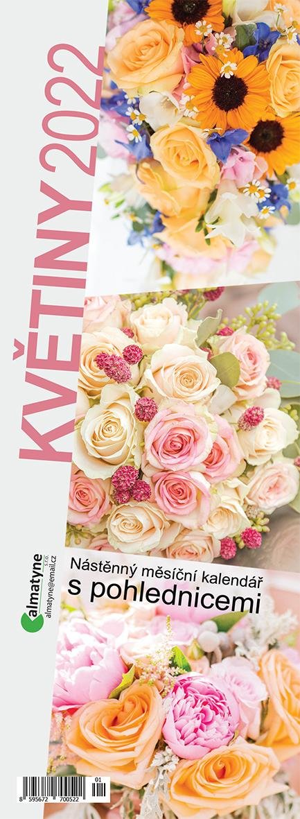 Kalendář 2022 - Květiny, nástěnný pohlednicový měsíční, 105 x 290 mm