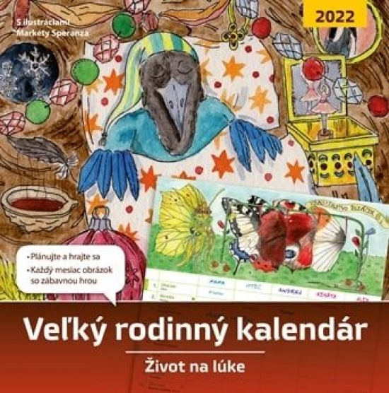 „Veľký rodinný kalendár“ s podtitulom Život na lúke vám pomôže zorganizovať rodinné aktivity a zároveň vám prinesie veľa zábavy. Kalendár má veľký formát a môžete do neho prehľadne zaznamenávať aktivity a plány až piatich členov rodiny. Na každý mesiac je pripravený obrázok zo života zvierat a rastlín, ktoré žijú na lúke. Ku každému obrázku sa vždy viaže zábavná hra, ktorej riešenie sa nachádza na konci kalendára. Nájdete tu aj zaujímavé informácie o živočíchoch a rastlinách, ktoré sú neoddeliteľnou súčasťou našich lúk. Kalendár obsahuje originálne a hravé ilustrácie výtvarníčky Markéty Speranza. Zorganizujte a naplánujte si čas pre svoju rodinu a objavte tajomstvá lúčnych rastlín a bylín, spoznajte život krtkov, mravcov, orchideí a ďalších známych i menej známych obyvateľov našich lúk.