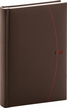 Hnědý denní diář Tailor 2019 s měkkým pórovitým povrchem a s efektním prošitím červenou nití. Diář je vhodný pro všechny druhy ražeb.