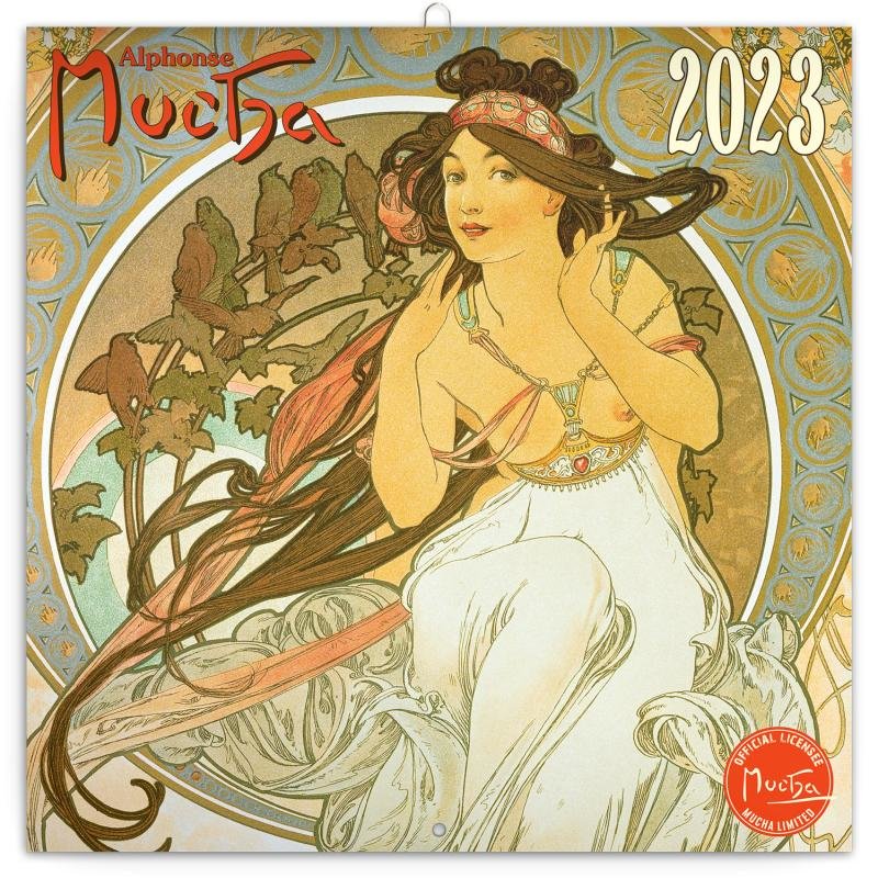 Poznámkový kalendář s reprodukcemi nejznámějších obrazů českého secesního malíře Alfonse Muchy, známého nejen svou tvorbou plakátů se Sarah Bernhardt. Obsahuje přehledné kalendárium od září 2022 do prosince 2023 v šesti jazycích, fáze měsíce, důležité svátky a prostor pro poznámky na každý den.