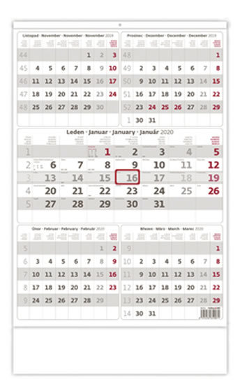Kalendář nástěnný 2020 - Pětiměsíční šedý