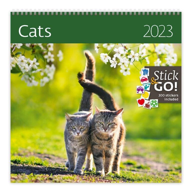 Rodinný plánovací kalendář Cats </br> Dají se zaznamenat klíčové aktivity bez psaní? V podobě barevných samolepek s piktogramy je to hračka. V přehledném kalendáriu se svátky evropských zemí zůstává stále dostatek místa na psaní. Kalendář se ze zdi neutrhne, protože ho zpevňuje velmi kvalitní, tuhá lepenka.<br>Formát kalendáře: 30 x 30 cm (30 x 60 cm) </br> 14 listů + samolepky </br> 12 fotografií s měsíčním kalendáriem </br> Kalendárium: měsíční mezinárodní se svátky 40 států </br> Kalendárium v šesti jazycích (GB, D, F, I, NL, DK) </br> Vazba: Twin-wire (se spirálou) </br> Super tuhá lepenka </br> Více než 300 barevných samolepek