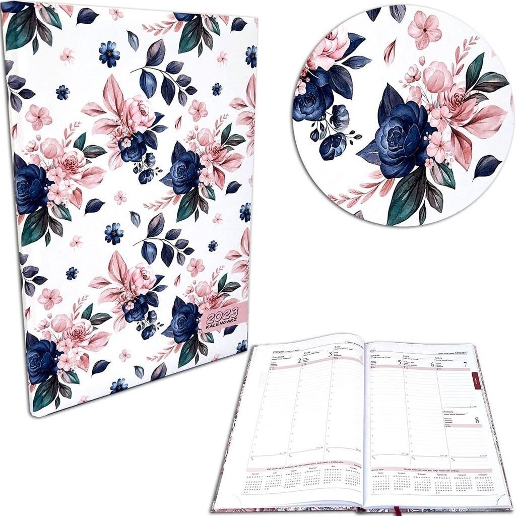 Kalendarz 2023 A4 tygodniowy soft touch róże blue (polsky)
