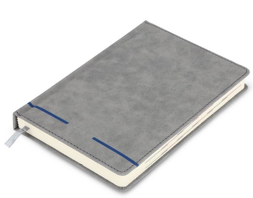 Wymiary: 14,8 x 21,2 cm | Ilość stron: 352 | Układ: dzienny | Papier: chamois 70g | Okładka: przeszywana i obszywana | Registry: drukowane | zaokrąglone rogi kartek i okładki Opis: Kalendarz posiada przejrzysty układ kalendarium (PL,GB,D,RUS) oraz rozbudowaną część informacyjną. Bloki szyte nićmi, dwa kolory druku (szary-burgund). Przeszywana okleina na tekturze z gąbką umożliwia wykonanie nadruków, głębokiego tłoczenia (termo*) i personalizacji laserowej kalendarza. Posiada wstążkę.