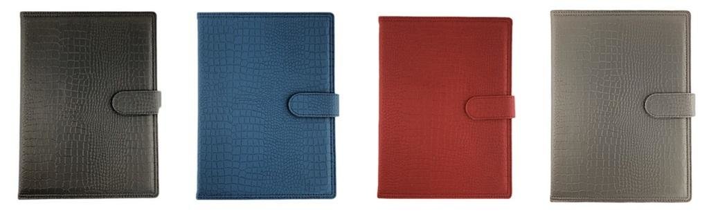 Twarda oprawa. Rozkład: dzień na 1 stronie, Wycięte registry, ilość kartek 352. Papier chamois, Druk dwukolorowy (czarno-czerwony). Skrócone kalendarium roku poprzedniego, bieżącego i następnego. W dolnej części strony skrócone kalendarium miesięczne. Notes, skorowidz tele-adresowy. Miejsce na długopis, tasiemka, mapa.