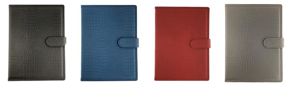 Twarda oprawa. Rozkład: tydzień na 2 stronach, Wycięte registry, ilość kartek 144. Papier chamois, Druk dwukolorowy (czarno-czerwony). Skrócone kalendarium roku poprzedniego, bieżącego i następnego. W dolnej części strony skrócone kalendarium miesięczne. Notes, skorowidz tele-adresowy. Miejsce na długopis, tasiemka, mapa.
