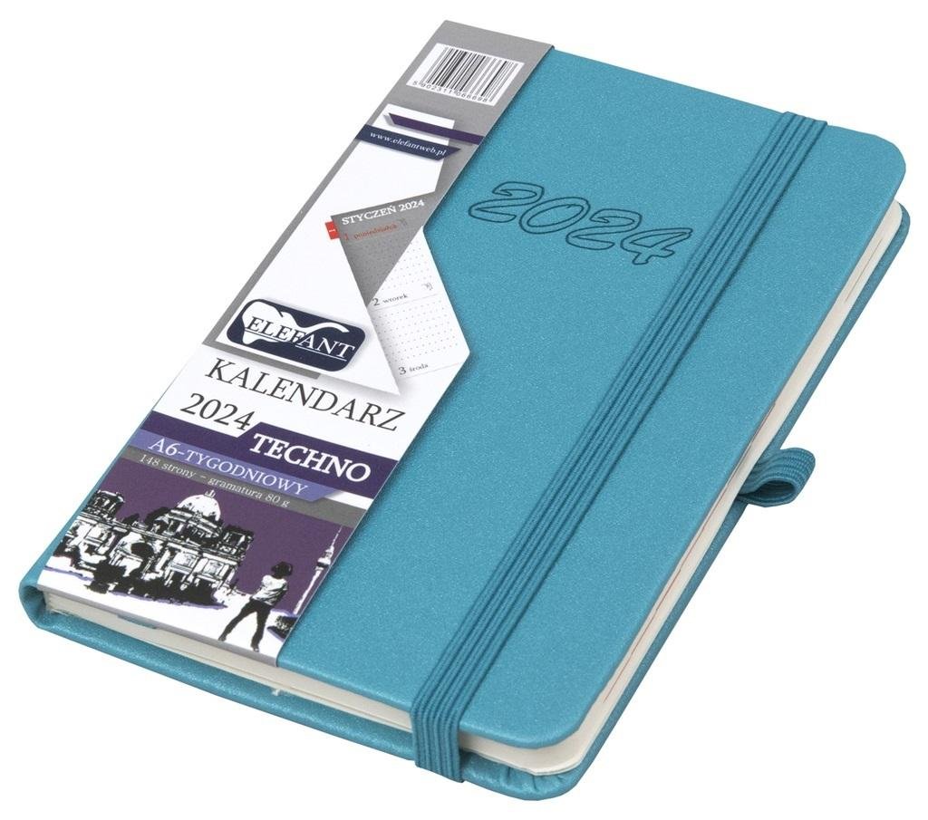 Kalendarz 2024 A6 tygodniowy Techno turkusowy (polsky)