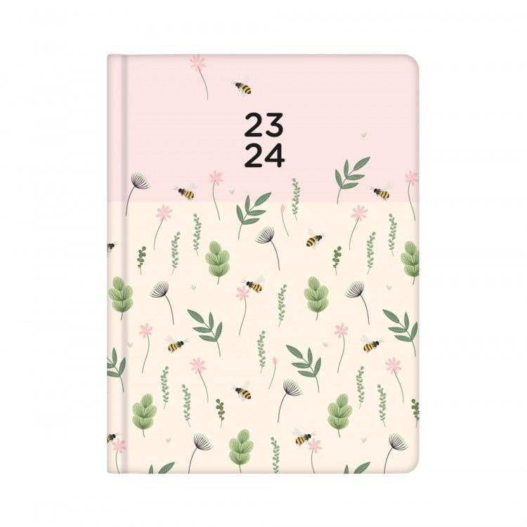 kalendarz książkowy 2023/2024, 18 miesięcy: lipiec 2023 - grudzień 2024, format: B6, wymiary: 12,5 x 17 x 1,5 cm, układ: tygodniowy, wewnątrz: wstążka, plan roku 2022, notatnik, adresownik, linijka, kalendarium dodatkowe na 2022-2023, gramatura: 120 g/m2, oprawa: twarda, gąbkowana