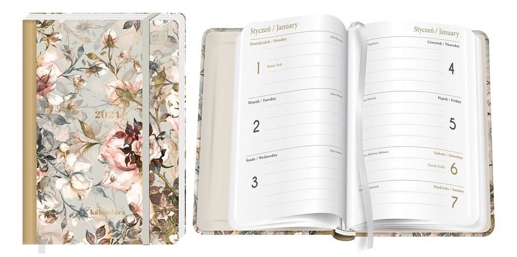 Format B6. Liczba stron: 192. Zaokrąglone rogi. Okładka z modnym metalicznym efektem. W środku kolorowa wyklejka. Twarda oprawa skutecznie chroni zawartość przed zniszczeniem. Elastyczna gumka chroni luźne notatki przed wypadnięciem. Kalendarium w układzie 1 tydzień na dwóch stronach. Miejsce na notatki pod każdym dniem. Wyposażony w praktyczną tasiemkę do zaznaczania strony. W środku także: adresówka, praktyczne kalendarium oraz miejsce na dodatkowe notatki.