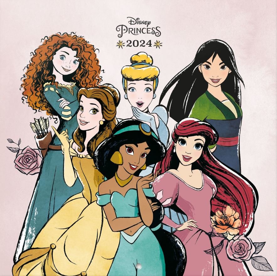 Oficiální nástěnný kalendář Disney 2024 s plakátem: Princezny (30 x 30|60 cm)
