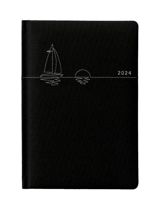 Kalendarz książkowy 2024 A5 dzienny haft czarny (polsky)