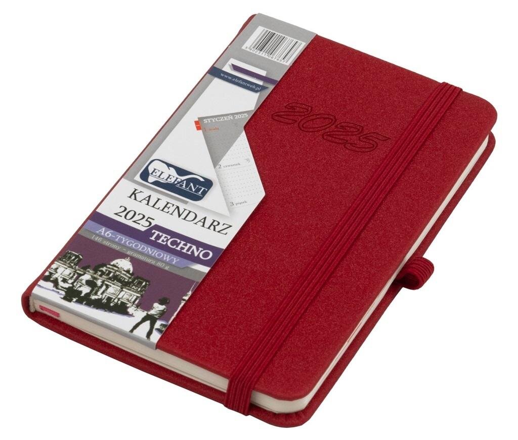 Kalendarz 2025 A6 tyg. Techno czerwony ELEFANT (polsky)