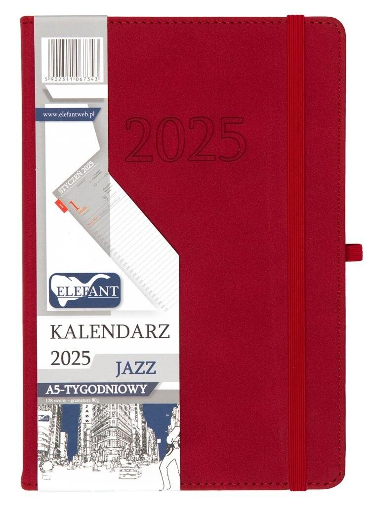 Kalendarz 2025 A5 tygodniowy Jazz czerwony (polsky)