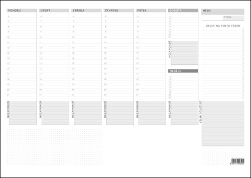 - Přehledný formát A3 poskytuje dostatek prostoru pro detailní plánování každého týdne.