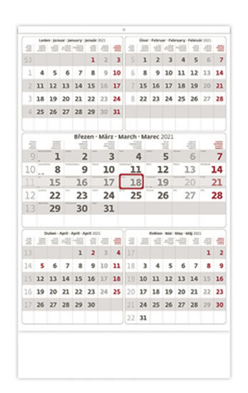 Kalendář 2021 nástěnný: Pětiměsíční šedý, 315x450