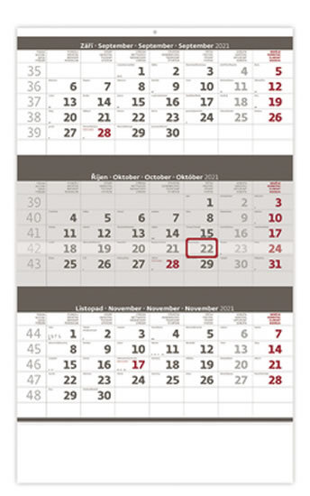 Kalendář 2021 nástěnný: Tříměsíční šedý, 315x450