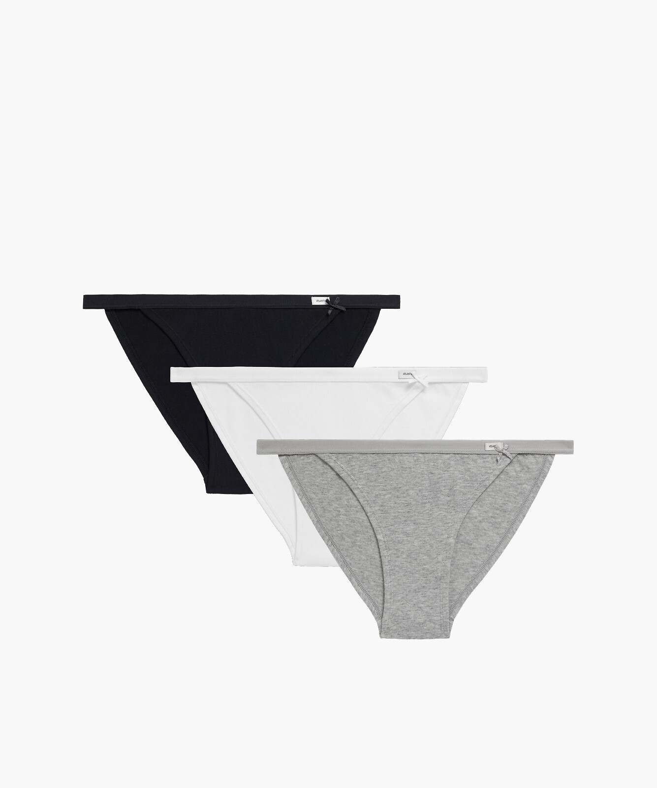 Figi damskie typu tanga- z wysokiej jakości bawełny- niska talia i mocno wycięte boki- po bokach elastyczna, płaska gumka- idealne dopasowanie- wygodne w użytkowaniu- pakowane w pudełko po 3 sztuki
