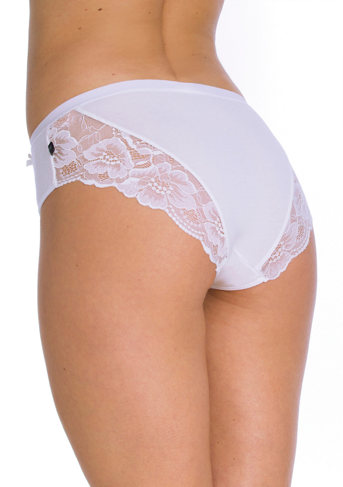 Figi damskie- z wysokiej jakości bawełny- w pasie płaska gumka- wyższe w stanie- tył obszyty koronką číst celé