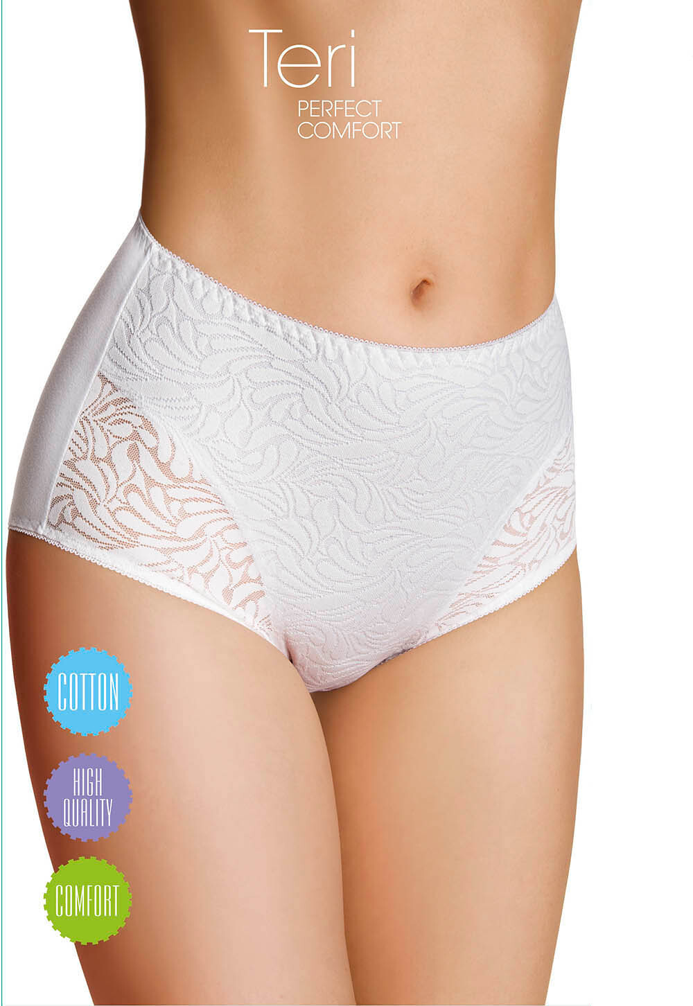 Wysokie, zabudowane figi damskie- górna część z ażurowej, elastycznej koronki- przód od wewnętrznej strony podszyty bawełną- dół z delikatnej bawełny číst celé