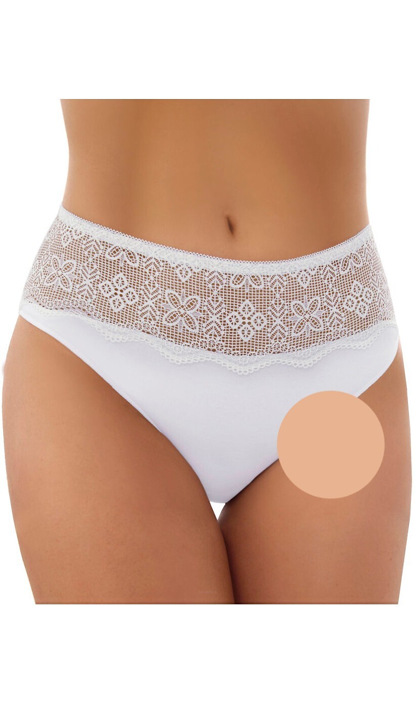 Klasyczne figi damskie- wysokiej jakości bawełna- z przodu w górnej linii ażurowa koronka- zabudowane biodra- tył gładki