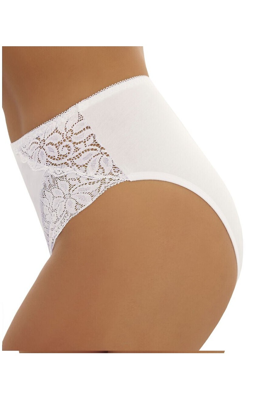 Figi damskie- wysoka linia talii- zabudowane biodra- wykonane z gładkiej bawełny w połączeniu z z ażurową koronkąSkład: 92% bawełna, 8% elastan; koronka 88% poliamid, 12% elastan