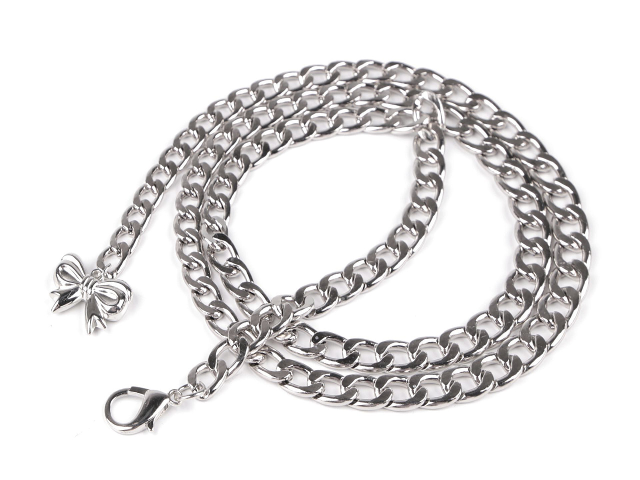 Pásek kovový / řetězový s přívěskem - 1 ks - 1 stříbrná mašle