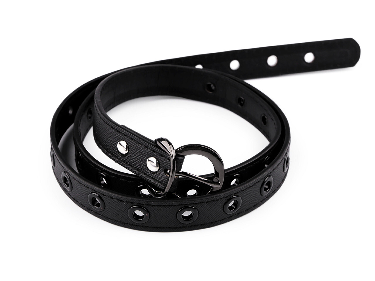 Dámský pásek s oky po celé délce se řadí k nadčasovým modelům. Mohou jej nosit i dívky, protože obvod pásku si lehce přizpůsobí svému pasu. Díky jednoduchému designu se dá dobře kombinovat se širokou škálou oděvů. Má klasickou kovovou sponu na zapnutí a štepování po obvodu.Maximální obvod zapnutí...