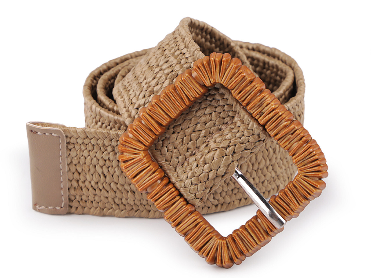 Pružný pásek je velice praktický. Má zajímavou strukturu z navzájem propletených pruženek a imitace juty. Klasická spona na zapnutí, která je zdobená reliéfem připomínajícím dřevo, se díky síťované struktuře pásku dá zapnout v jakékoliv délce. Největší obvod zapnutého pásku je 95 cm. číst celé